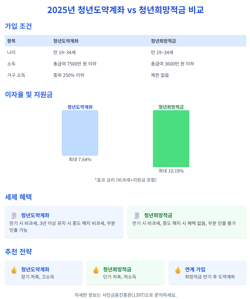 참고: 청년도약계좌는 장기 고정금리로 안정성 강조, 청년희망적금은 단기 고금리로 빠른 수익 제공.
