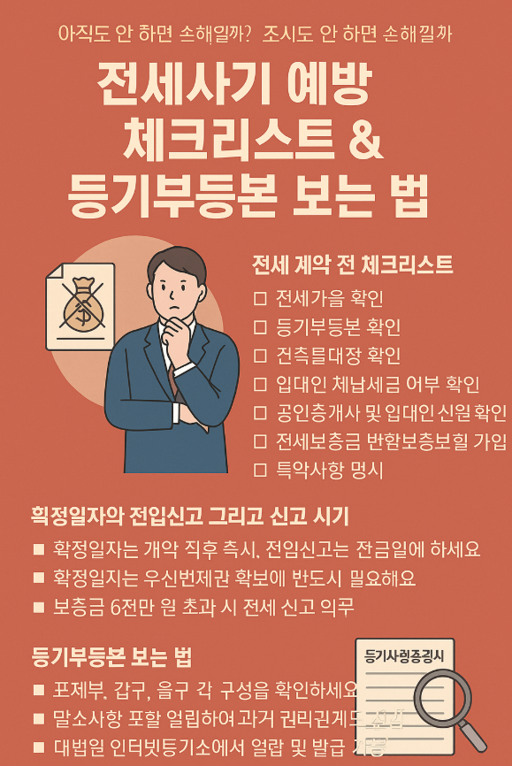 이 글에 정리된 예방 체크리스트와 법적 절차들을 꼭 기억하시면서, 현명하고 안전한 전세 계약 하세요!