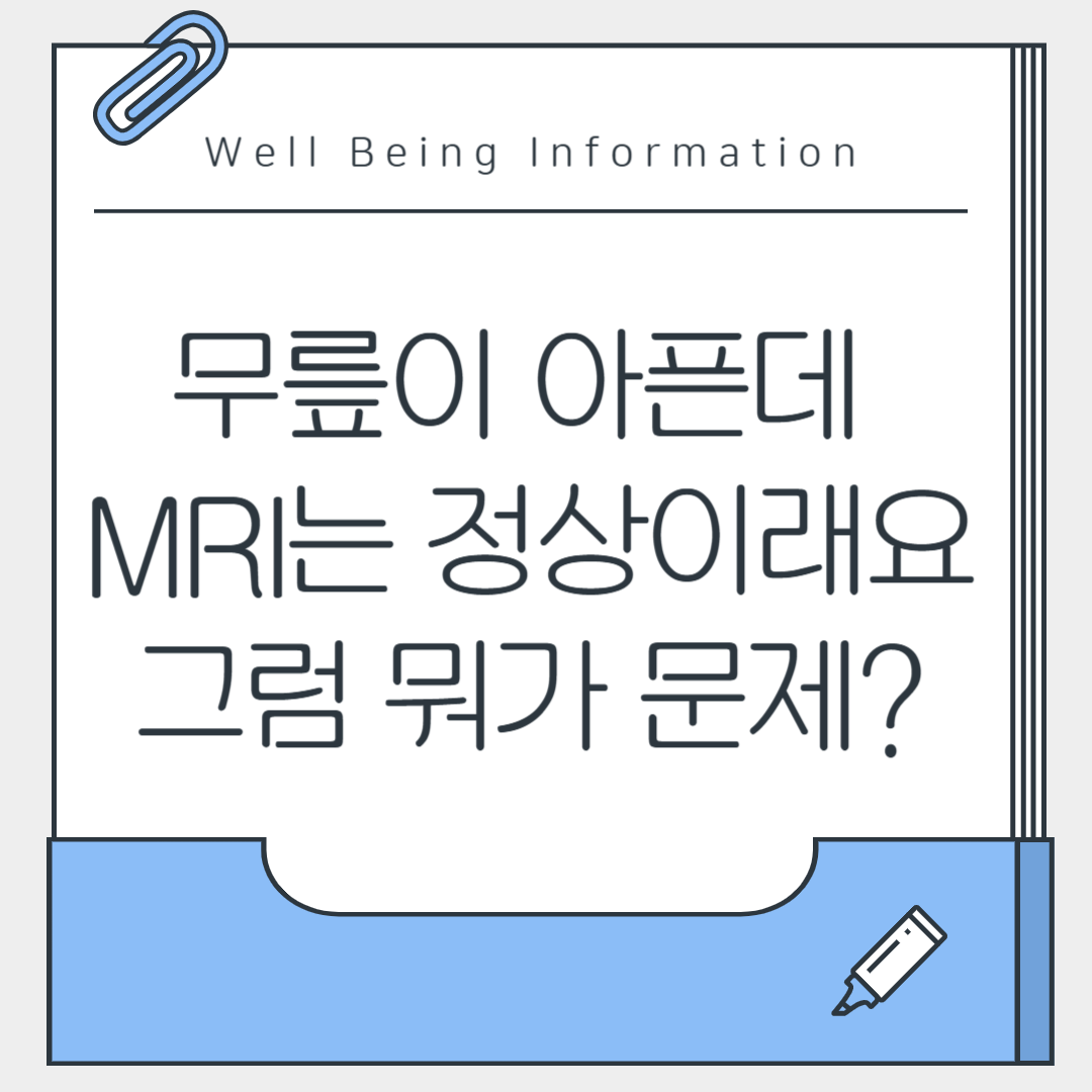 MRI가 정상이라도 무릎 통증은 연골 연화증, 근육 불균형, 또는 생체역학적 문제로 인해 발생할 수 있습니다. 증상이 지속되거나 일상에 지장을 준다면 정형외과를 방문해 정확한 진단을 받고, 필요 시 도수치료를 병행하세요. 평소 근력 강화, 체중 관리, 올바른 자세는 무릎 건강을 지키는 데 큰 도움이 됩니다. 내 몸의 신호를 놓치지 말고, 건강한 무릎으로 활기찬 일상을 유지하세요!